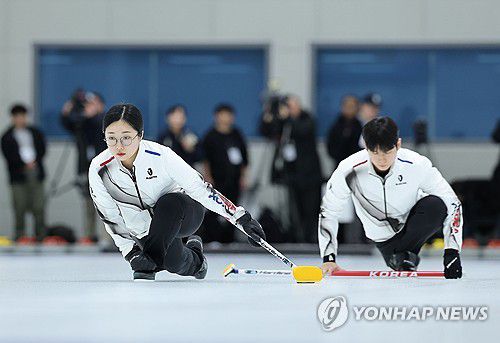 (진천=연합뉴스) 류영석 기자 = 2026 밀라노·코르티나 동계올림픽 컬링 믹스더블에 출전하는 김선영, 정영석이 7일 충북 진천선수촌에서 훈련을 하고 있다. 2026.1.7