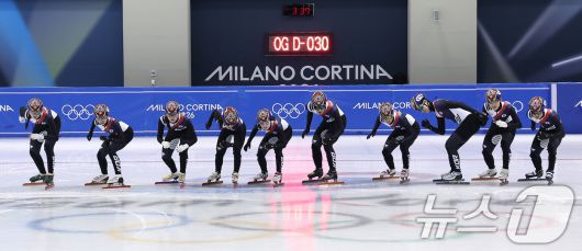 (진천=뉴스1) 김성진 기자 = 쇼트트랙 선수들이 7일 충북 진천선수촌 챔피언하우스에서 열린 2026 밀라노코르티나동계올림픽대회 D-30 미디어데이 및 훈련 공개에서 출발 표즈를 취하고 있다. 2026.1.7/뉴스1ssaji@news1.krCopyright ⓒ 뉴스1. All rights reserved. 무단 전재 및 재배포, AI학습 이용 금지.