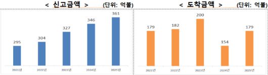 2025년 연간 외국인직접투자 신고액이 360억5000만 달러를 기록하며 역대 최대 실적을 달성했고, 자금 도착액도 전년 대비 16.3% 증가한 179억5000만 달러로 집계돼 역대 세 번째로 높은 수준을 기록했다 [사진=산업부] |