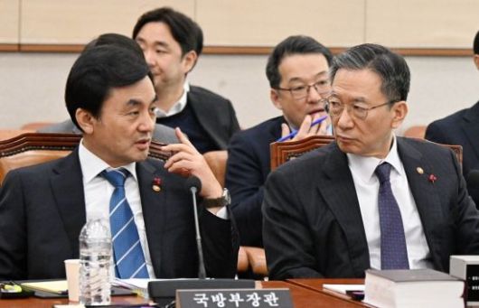 정성호 법무부 장관(오른쪽)과 안규백 국방부 장관이 7일 국회에서 열린 법제사법위원회 전체회의에서 대화하고 있다. <ⓒ투자가를 위한 경제콘텐츠 플랫폼, 아시아경제(www.asiae.co.kr) 무단전재 배포금지>