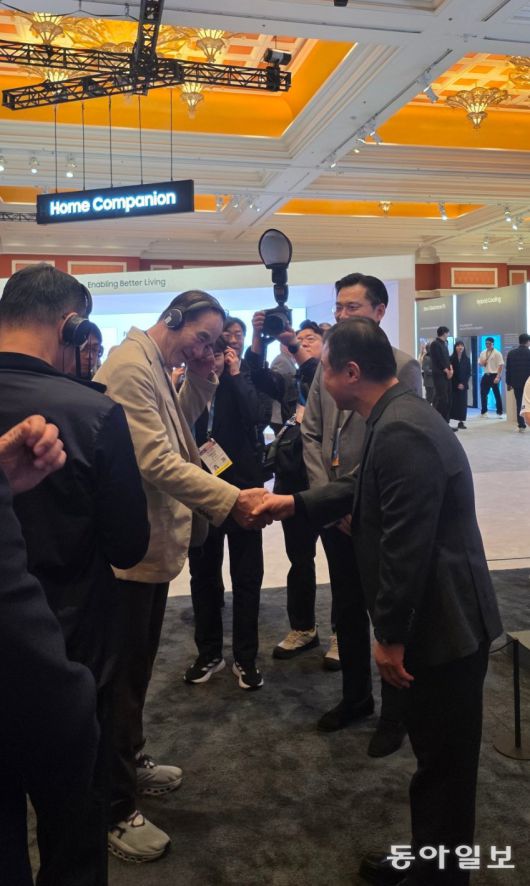 노 사장이 더 퍼스트 룩을 둘러본 시점은 정의선 현대차그룹 회장의 삼성전자 전시장 관람을 1시간 여 앞뒀을 때다. 정 회장을 맞이하기 전에 노 사장이 사전에 전시장을 꼼꼼하게 둘러 본 것이라는 해석도 나온다. 노 사장은 “정 회장과 만나는가”라는 질문에 “제가 계속 여기에 있다면 (만나지 않겠나)”라고 답하기도 했다. 지난해 10월 젠슨 황 엔비디아 CEO의 방한 때 황 CEO, 이재용 삼성전자 회장, 정 회장이 ‘깐부 회동’을 하면서 삼성전자와 현대차 사이가 각별해지면서, 사전 준비에 공을 들였다는 것이다.