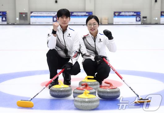 (진천=뉴스1) 김성진 기자 = 컬링 믹스더블 정영석과 김선영이 7일 충북 진천선수촌 챔피언하우스에서 열린 2026 밀라노코르티나동계올림픽대회 D-30 미디어데이 및 훈련 공개에서 포즈를 취하고 있다. 2026.1.7/뉴스1ssaji@news1.krCopyright ⓒ 뉴스1. All rights reserved. 무단 전재 및 재배포, AI학습 이용 금지.
