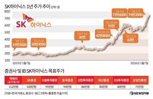 주가 강세가 이어지자 국내 증권사들은 SK하이닉스의 실적과 주가 전망을 잇따라 상향 조정하고 있다. 가장 이른 시점부터 '100만원' 가능성을 제시한 곳은 SK증권이다. SK증권은 지난해 말 리포트를 통해 'SK하이닉스' 목표주가를 100만원으로 제시하며, AI 서버 확산 국면에서 HBM을 포함한 고부가 메모리의 실적 레버리지가 과거 메모리 사이클과는 구조적으로 다를 것이라고 평가했다.