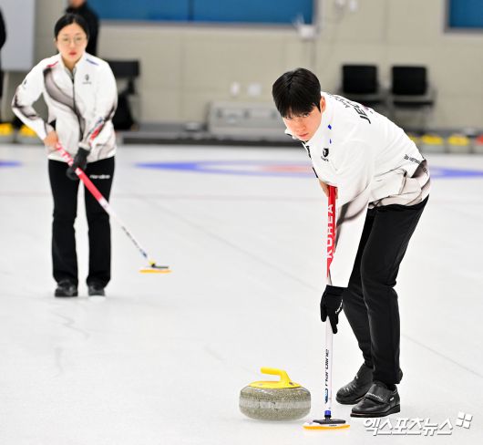 (엑스포츠뉴스 진천, 김한준 기자) 7일 오후 충북 대한체육회 진천국가대표선수촌에서 열린 2026 밀라노코르티나동계올림픽대회 D-30 훈련공개, 믹스더블 정영석이 훈련에 임하고 있다.