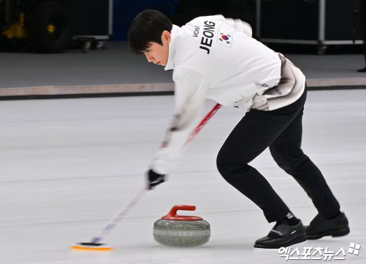 (엑스포츠뉴스 진천, 김한준 기자) 7일 오후 충북 대한체육회 진천국가대표선수촌에서 열린 2026 밀라노코르티나동계올림픽대회 D-30 훈련공개, 믹스더블 정영석이 훈련에 임하고 있다.김한준 기자 kowel@xportsnews.com
