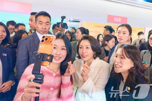 (상하이(중국)=뉴스1) 허경 기자 = 김혜경 여사가 7일 중국 상하이 푸싱아트센터에서 열린 K-뷰티행사에서 참석자와 기념사진을 촬영하고 있다. (공동취재) 2026.1.7/뉴스12expulsion@news1.krCopyright ⓒ 뉴스1. All rights reserved. 무단 전재 및 재배포, AI학습 이용 금지.