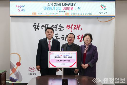 충남 당진시는 1월 7일 오전 시청 7층 접견실에서 누리농원(공동대표 김은수, 김태숙)으로부터 관내 취약계층을 돕기 위한 성금 500만 원을 기탁받았다.