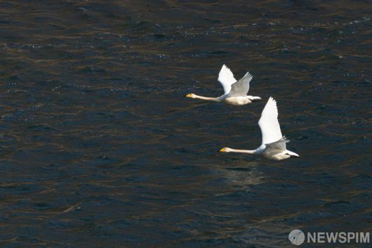 [남양주=뉴스핌] 류기찬 기자 = 7일 오전 경기 남양주시 와부읍 팔당댐 인근 상수원보호구역에서 큰고니 2마리가(멸종위기 야생생물 II급, 천연기념물 201-2호) 비행을 하고 있다. 2026.01.07 ryuchan0925@newspim.com |