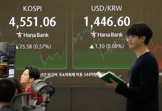 7일 코스피는 전 거래일보다 25.58포인트(0.57%) 오른 4551.06에 장을 마쳤다. 전일 대비 0.90% 상승한 4566.34에 개장한 코스피는 장중 4611.72까지 오르며 사상 처음으로 4600선에 닿았다. 기관은 9390억원, 개인은 2946억원을 순매도했다. 반면, 외국인은 1조2544억원을 순매수하며 지수를 끌어올렸다.