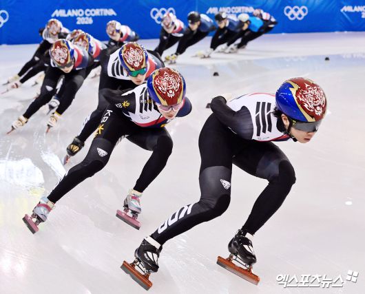 (엑스포츠뉴스 진천, 김한준 기자) 7일 오후 충북 대한체육회 진천국가대표선수촌에서 열린 2026 밀라노코르티나동계올림픽대회 D-30 훈련공개, 쇼트트랙 대표팀 선수들이 훈련에 임하고 있다.