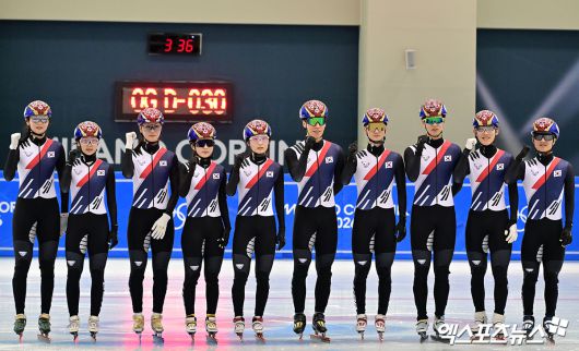 (엑스포츠뉴스 진천, 김한준 기자) 7일 오후 충북 대한체육회 진천국가대표선수촌에서 열린 2026 밀라노코르티나동계올림픽대회 D-30 훈련공개, 쇼트트랙 대표팀 선수들이 포즈를 취하고 있다.김한준 기자 kowel@xportsnews.com