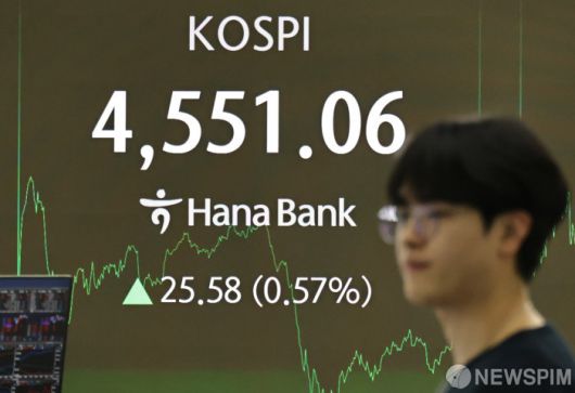 [서울=뉴스핌] 양윤모 기자 = 7일 오후 코스피가 전장 종가보다 25.58 포인트(0.57%) 상승하며 4551.06으로, 코스닥은 8.58 포인트(0.90%) 하락한 947.39로 장을 마감한 가운데, 서울 중구 하나은행 딜링룸에서 직원들이 업무를 보고 있다.  서울외환시장에서 달러/원 환율은 전장 대비 1.10원 상승한 1446.60원에 주간거래를 마감했다. 2026.01.07 yym58@newspim.com