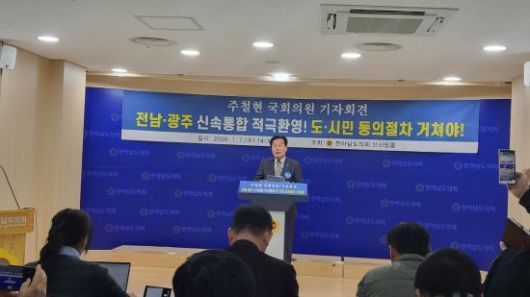 더불어민주당 주철현 국회의원(전남 여수갑)이 광주·전남 행정통합 추진에 대해 찬성한다는 입장을 밝혔다. 다만 행정통합 전 주민투표가 이뤄져야 한다는 전제조건을 내 걸었다.