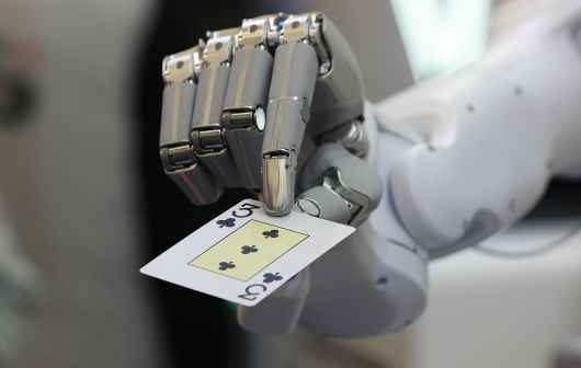 이색적인 로봇도 눈길을 끌었다. 싱가포르 스타트업 샤르파(Sharpa)는 인간의 손을 완벽에 가깝게 구현한 샤르파웨이브(SharpaWave)를 공개했다. 카지노 딜러 복장을 한 이 로봇은 얇은 트럼프 카드를 한 장씩 정확하게 나눠주는가 하면, 현란한 손놀림으로 카드를 섞는 기술까지 선보였다. 이는 로봇이 힘을 쓰는 노동뿐만 아니라 극도로 예민한 감각이 필요한 정밀 작업까지 수행할 수 있음을 시사한다.