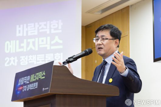 [서울=뉴스핌] 김성환 기후에너지환경부 장관이 7일 서울 여의도 국회 의원회관에서 열린 바람직한 에너지믹스 2차 정책토론회에서 인사말을 하고 있다. [사진=기후에너지환경부] 2026.01.07 photo@newspim.com
