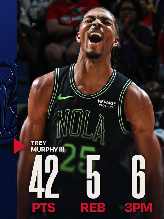 펠리컨스에서는 트레이 머피가 커리어 하이인 42점을 퍼부으며 분전했고, 자이언 윌리엄슨이 15점, 데릭 퀸이 10점 13리바운드를 기록했다. 펠리컨스는 3쿼터 막판 한때 83-74까지 앞서며 경기를 주도했지만, 이후 무너졌다.