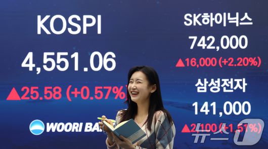 7일 코스피는 전 거래일(4525.48)보다 25.58포인트(0.57%) 오른 4551.06에 마감했다.