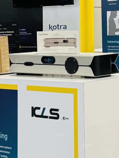 이번 전시에서 선보인 캄스탠드는 단순한 모니터 받침대를 넘어, 사용자의 미세한 스트레스 신호를 AI가 감지해 자동으로 높이를 조절하고, 심리 안정에 도움이 되는 테라피 사운드와 아로마를 분출하는 기능을 갖춘 것이 특징이다.