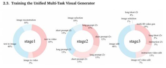 1단계에서는 긴 설명과 함께 이미지·영상 자료를 학습시켰다. 이 과정에서 AI의 이해 능력과 제작 능력을 서로 맞췄다. 2단계에서는 긴 설명과 짧은 설명을 섞어서 학습시켜 AI가 짧은 명령도 이해하고, 부족한 정보를 스스로 채울 수 있게 했다. 3단계에서는 모든 종류의 작업을 함께 학습시켰다.