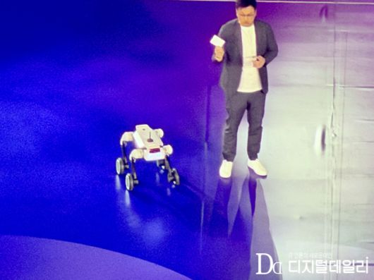 발표 후반부에는 4족 보행 로봇, 일명 '로봇 개'가 무대 위로 걸어 나와 관객들의 시선을 사로잡았다.