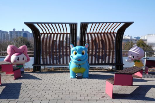 도심 소공원에 설치된 부천핸썹 캐릭터 모습./사진제공=한국만화영상진흥원 |