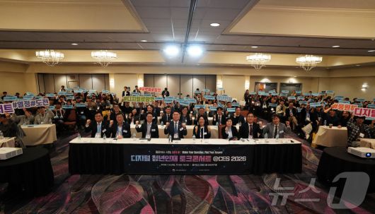 (서울=뉴스1) = 과학기술정보통신부가 6일 오후(현지시간) 미국 라스베이거스 플라밍고 호텔에서 ‘디지털 청년인재 토크콘서트@CES 2026’ 행사를 개최했다고 7일 밝혔다. 사진은 류제명 과학기술정보통신부 제2차관(앞줄 왼쪽 네 번째)이 참석자들과 기념촬영하는 모습. (과학기술정보통신부 제공. 재판매 및 DB 금지) 2026.1.7/뉴스1