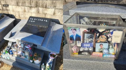 특히 처음으로 공개된 故 이선균의 묘비에는 "모든 것이 그리운 오늘.. 사랑해"라는 애틋한 문구가 새겨져 뭉클함을 더한다. 또한 묘비 앞에는 여전히 그를 그리워하는 팬들의 선물을 모아두는 공간도 마련됐다.
