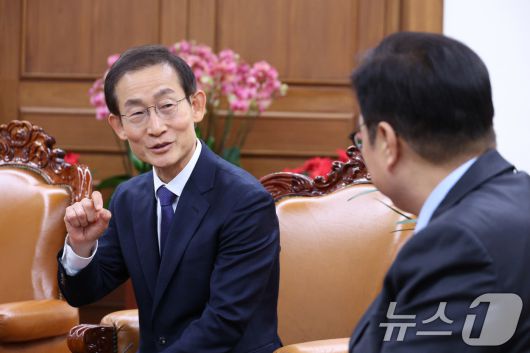 (서울=뉴스1) 신웅수 기자 = 김호철 감사원장이 7일 서울 여의도 국회에서 우원식 국회의장을 예방하고 있다. 2026.1.7/뉴스1