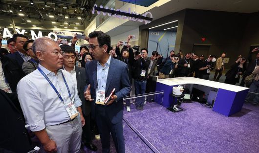 퀄컴 부스도 찾아 휴머노이드용 고성능 로봇 프로세서 퀄컴 드래곤윙 IQ10에 대해 설명을 들었다. 아카시 팔키왈라 퀄컴 최고운영책임자가 정 회장과 인사를 나눴고 안내를 맡는 모습이었다. 현대차그룹이 피지컬 AI를 신성장 동력으로 낙점하고 휴머노이드 개발에 전력을 쏟는 상황에서 글로벌 협업 행보가 이어질 것을 암시하는 대목이다.