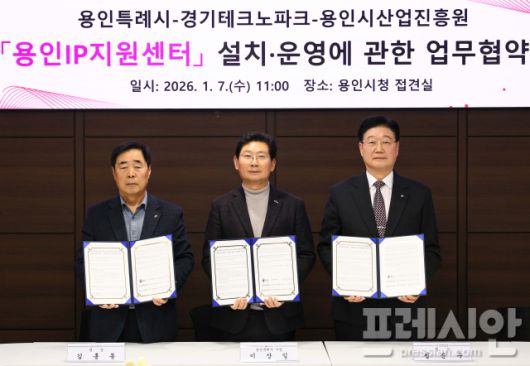 시는 7일 경기테크노파크 및 용인시산업진흥원과 ‘용인IP지원센터 운영에 관한 상호협력 협약’을 체결했다.