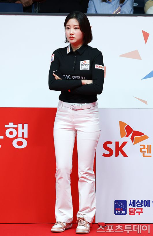 [고양(경기)=스포츠투데이 팽현준 기자] 7일 경기도 킨텍스 PBA스타디움에서 열린 웰컴저축은행 PBA 팀리그 2025-2026 5라운드 크라운해태와 SK렌터카의 경기, 여자복식에 출전한 SK렌터카 조예은이 모니터링을 하고 있다. 2026.01.07.