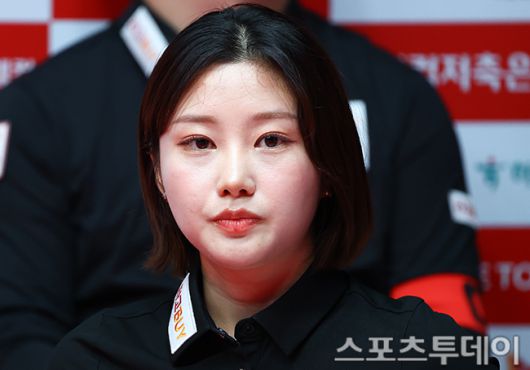 [고양(경기)=스포츠투데이 팽현준 기자] 7일 경기도 킨텍스 PBA스타디움에서 열린 웰컴저축은행 PBA 팀리그 2025-2026 5라운드 크라운해태와 SK렌터카의 경기, 여자복식에 출전한 SK렌터카 조예은이 모니터링을 하고 있다. 2026.01.07. [스포츠투데이 팽현준 기자 sports@stoo.com]