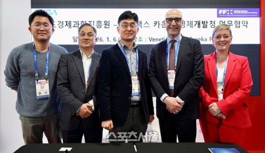 미국 현지 시각 6일 라스베가스 베네시안 엑스포에서 경과원과 미국 버지니아주 페어팩스 카운티 경제개발청(FCEDA) 관계자들이 도내 스타트업의 북미 시장 진출 지원을 위한 업무협약을 체결했다. 제공=경기도경제과학진흥원 |
