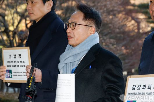 [서울=뉴스핌] 류기찬 기자 = 더불어민주당 정치검찰 조작기소대응 특별위원회 박선원 의원이 7일 오후 서울 서초구 대검찰청에 쌍방울 관련 증인 진술 번복 및 회유의혹, 조사절차 의혹 등에 대한 고발장 접수를 하기 전 입장을 밝히고 있다.  2026.01.07 ryuchan0925@newspim.com