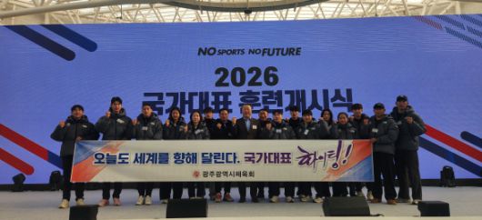 (광주=국제뉴스) 이정주 기자 = 광주광역시체육회(회장 전갑수)는 7일 오전 10시 충북 진천국가대표선수촌 벨로드롬에서 열린 '2026년 국가대표선수단 훈련개시식'에 전갑수 체육회장 등 임직원이 참석해 국가대표선수들의 선전을 기원하고 광주 소속 선수들을 격려했다고 밝혔다.