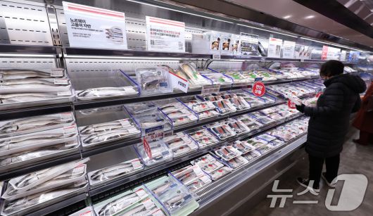 7일 서울의 한 대형마트에 고등어를 비롯한 생선이 진열돼 있다. 정부는 8일부터 고등어를 최대 60% 할인 지원하고, 수입선 다변화를 추진한다는 계획이다. 노르웨이산 고등어 어획량 감소와 환율 여파로 수입산 고등어 가격이 가파르게 오른 데 따른 조치다. 2026.1.7/뉴스1 ⓒ News1 박지혜 기자 |