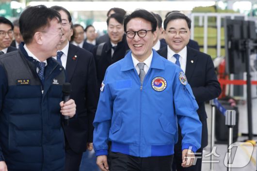 (서울=뉴스1) 임세영 기자 = 김민석 국무총리가 7일 경남 사천 한국항공우주산업(KAI)을 방문해, 생산이 완료된 KF-21 보라매 전투기의 내부 장비 등을 둘러보며 성능 및 운용에 대한 설명을 청취하고 있다. (총리실 제공. 재판매 및 DB 금지) 2026.1.7/뉴스1