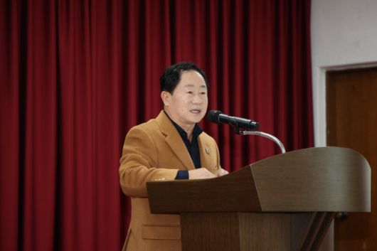 주광덕 남양주시장이 농업인핵심리더 교육·풍년농사기원 행사에서 인사말을 하고 있다/남양주시 |
