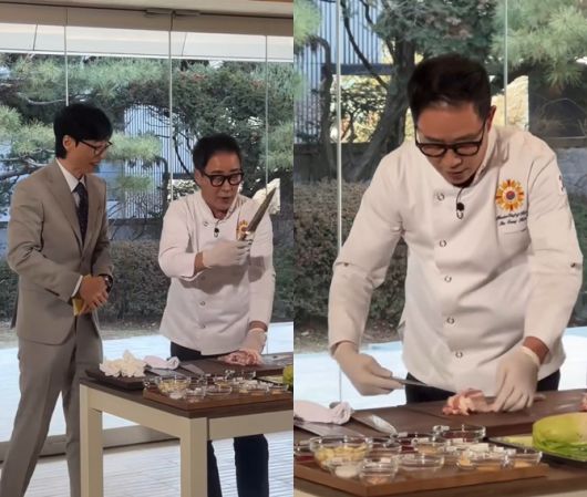 공개된 영상 속 임성근은 테이블 위에서 직접 칼질을 선보이고 있다. 그의 화려한 칼질을 지켜본 유재석은 "이야"라고 감탄하면서도 "느낌은 셰프님인데도 불구하고..."라며 말끝을 흐렸고, 임성근은 "칼 장사"라고 받아쳐 웃음을 안겼다.