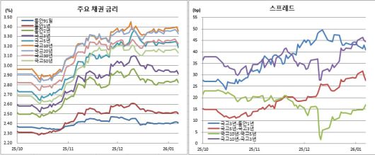 채권시장 참여자들은 연일 사상 최고치를 경신 중인 코스피 랠리에도 불구하고 채권시장이 잘 버티고 있다고 평가했다. 실제 이날 코스피는 장중 사상 처음으로 4600포인트를 돌파했으며 4551.06에 거래를 마쳐 종가기준 역대 최고치를 나흘째 이어갔다. 새해를 맞아 기관들이 본격적으로 매매를 시작한 것 같지는 않다고 전했다. 국고채 3년물 금리가 박스권 하단에 와 있는 만큼 추가 강세시 커브가 더 눌리는(플래트닝) 방향이 될 것으로 예측했다. 이번주말로 예정된 미국 비농업 고용지표(넌펌) 발표를 확인한 후 다음주나 돼야 본격적으로 방향을 잡을 것 같다고 봤다.