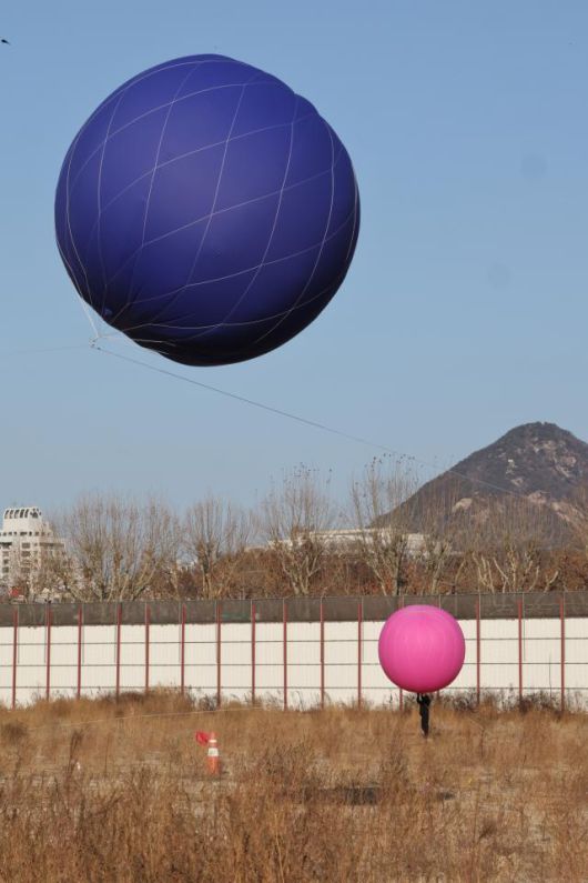 서울 세운4구역 부지에서 관계자들이 경관 확인 용 대형풍선을 설치하고 있다. [사진=연합뉴스] |