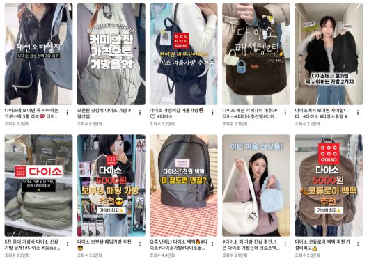 이들 상품의 경우 인스타그램과 유튜브 등 SNS를 통해 공유되며 입소문을 타고 있다. 대표적으로 다이소가 지난해 12월 출시한 '르까프 백팩(경량·베이직)'의 경우 출시된 지 2주 만에 후기가 줄을 잇고 있다. 소비자들은 "운동 가방으로 사용하려고 구매했는데, 이 가격에 이 정도 품질이라니 말도 안 된다", "요즘 물가에 국밥 한 그릇 가격도 안 되는 비용으로 백팩을 사서 좋다" 등의 반응이다.