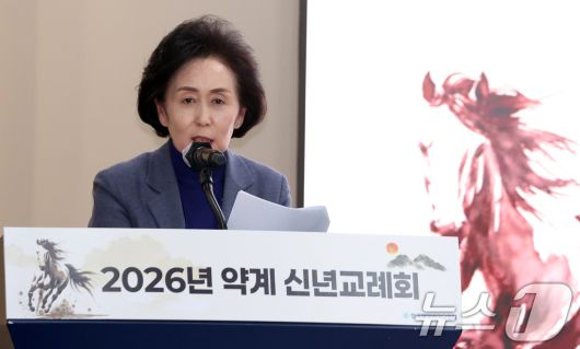(서울=뉴스1) 김명섭 기자 = 권영희 대한약사회장이 7일 서울 서초구 한국제약바이오협회에서 열린 2026 약계 신년교례회에서 환영사를 하고 있다. 2026.1.7/뉴스1msiron@news1.krCopyright ⓒ 뉴스1. All rights reserved. 무단 전재 및 재배포, AI학습 이용 금지.