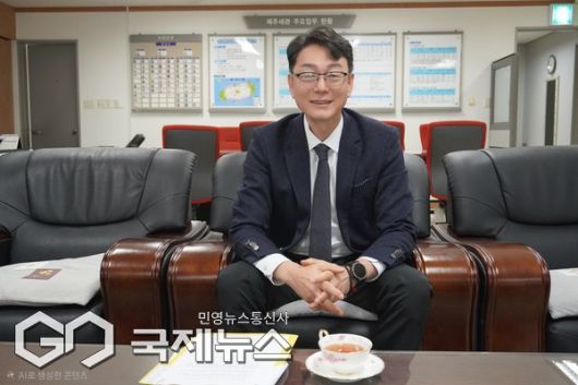 정진우 제주세관장이 지난 6일 오후 문서현 기자와의 인터뷰에서 제주세관의 역할과 방향에 대해 설명하고 있다.[영상= 제주세관](제주=국제뉴스) 문서현 기자 =사람들은 공항에 내리면 여행을 시작한다. 누군가는 그 순간부터 국경을 지킨다. 세관은 국경선 위에 서 있지 않지만, 모든 출입구에서 국경의 역할을 수행한다. 그래서 세관은 '보이지 않는 국경'이다.