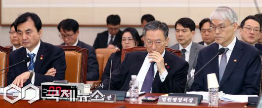 (서울=국제뉴스) 안규백 국방부 장관과 정성호 법무부 장관, 천대엽 법원행정처장이 7일 오후 서울 여의도 국회에서 열린 법제사법위원회 전체회의에 출석해 자료를 살펴보고 있다./사진=이용우 기자