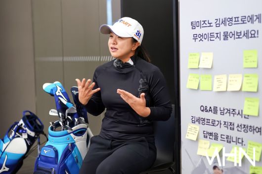 팀 미즈노 김세영(31.스포타트)이 팬 사인회 찾아 온 팬들과 함께 Q&A를 진행하고 있다.