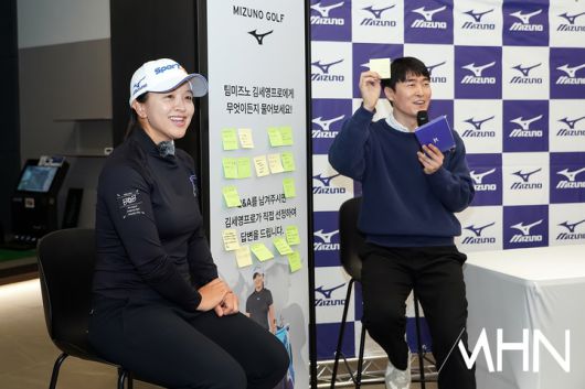 (MHN 성남, 박태성 기자) 7일 경기도 분당에 위치한 골프존마켓 분당센터에서 '팀 미즈노 김세영 팬 사인회'가 열렸다. 팀 미즈노 김세영(31.스포타트)이 팬 사인회 찾아 온 팬들과 함께 Q&A를 진행하고 있다. <저작권자 Copyright ⓒ MHN / 엠에이치앤 무단전재 및 재배포 금지>