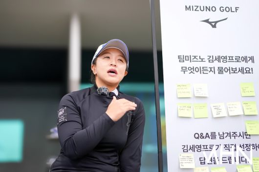 팀 미즈노 김세영(31.스포타트)이 팬 사인회 찾아 온 팬들과 함께 Q&A를 진행하고 있다.
