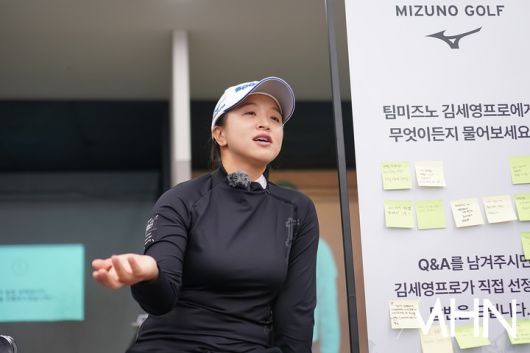 팀 미즈노 김세영(31.스포타트)이 팬 사인회 찾아 온 팬들과 함께 Q&A를 진행하고 있다.