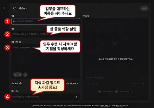 젬(Gem)은 제미나이의 맞춤형 AI 기능이다. AI에게 특정 역할과 지식을 부여해 나만의 전문 팀을 만들 수 있다.